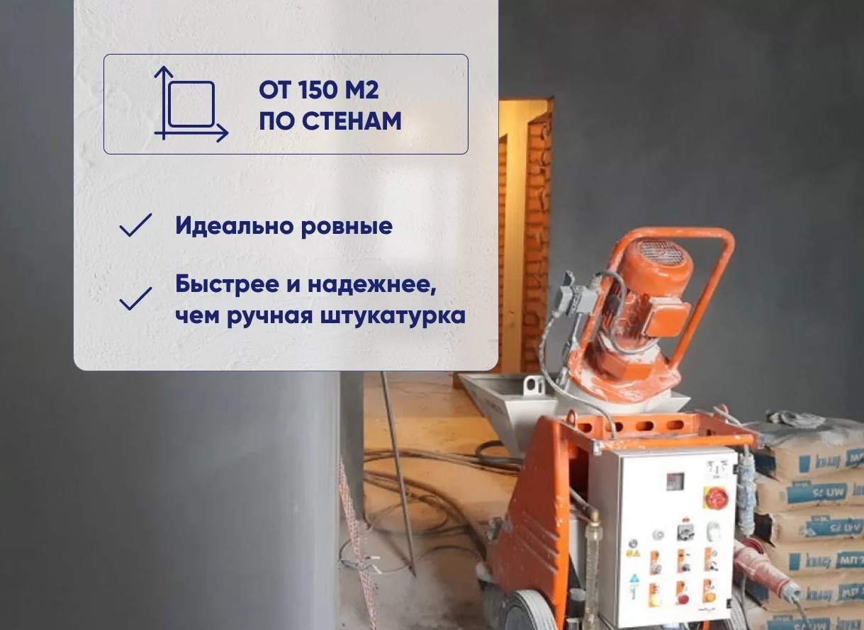 ✅ Высокая скорость работы. Благодаря использованию специализированного оборудования процесс нанесения штукатурки значительно ускоряется.
